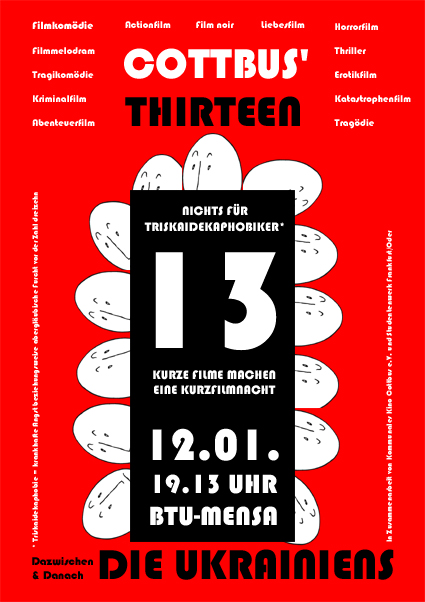 Lustiges, Schreckliches, Schräges, Nachdenkliches und noch viel mehr versprechen die 13 Filme mit denen wir Sie in eine heiße Nacht entlassen, denn dazwischen und danach spielen DIE UKRAINIENS Musik ukrainischer und russischer Barden, slawistische Folklore und russischen Rock und Pop.